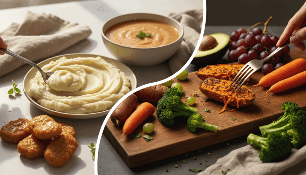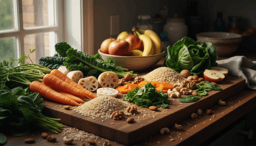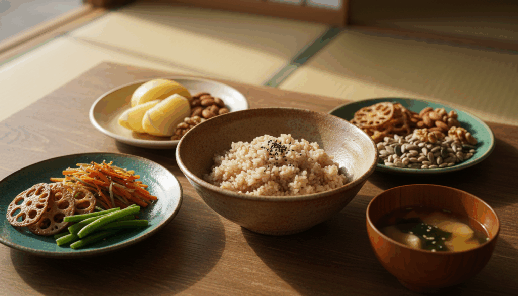 具体的には、さつまいも、レンコン、にんじん、小松菜、ほうれんそう、こんにゃく、キャベツ、大豆、たけのこ、なし、りんご、ごま、アーモンド、きのこなどが挙げられます。これらの食材を日常の食事に取り入れることで、自然と噛む回数を増やすことができます。